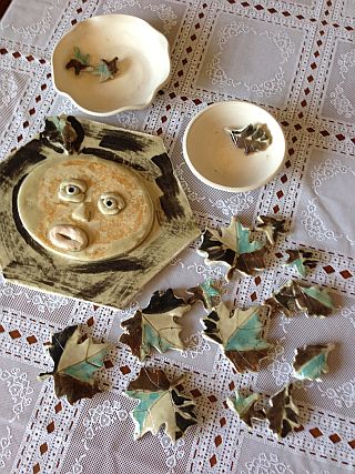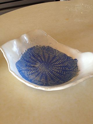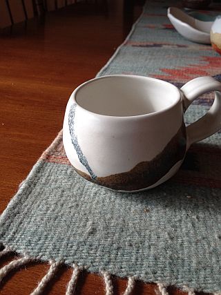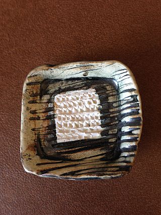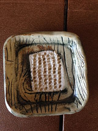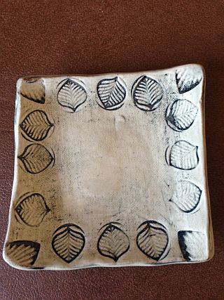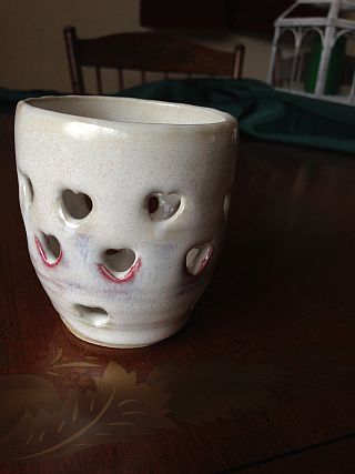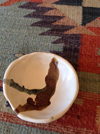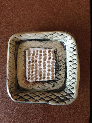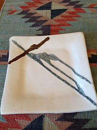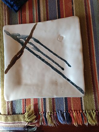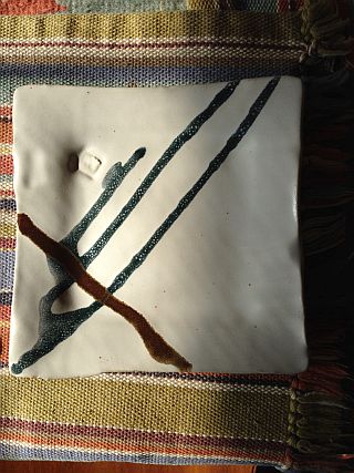 4-135 Ida's white, fire engine red underglaze sponged on sold 2016 |