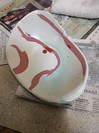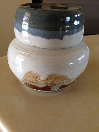 4-111 Ida's white, flambe, reglazed 5/18 with navy added |