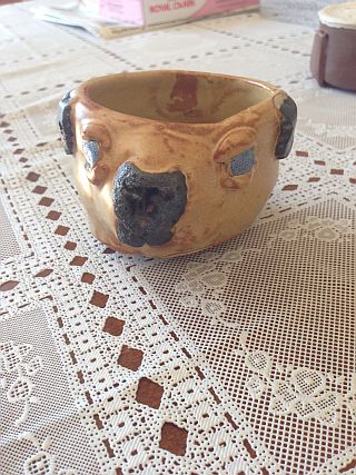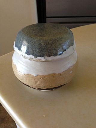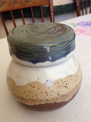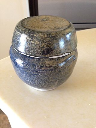 4-92 93 landscape: tenmoku, beige, chun, chun blue, lid stuck during firing |