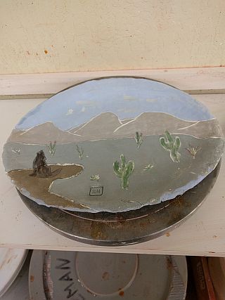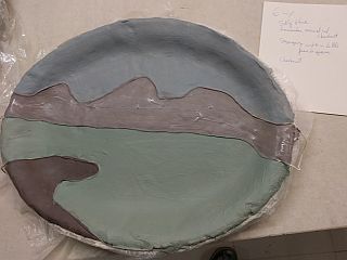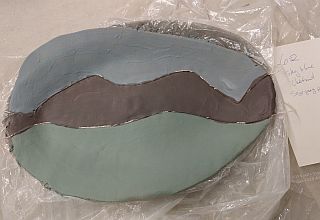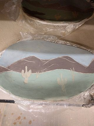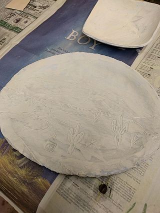different colors by pressing string into wet clay.Paint on 3-4 very